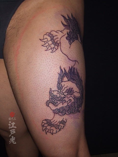 左足のすじ彫りスタートです。いつも休まず頻繫に彫りに来て頂きありがとうございます。