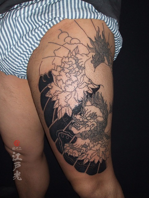 額のボカシが入りました。若いのにいつも休まず頻繫に彫りに来て頂きありがとうございます。