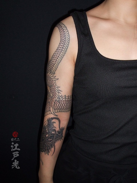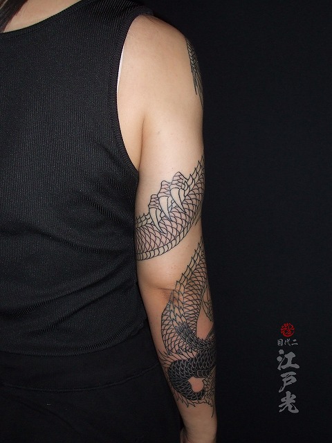 若い女性ですが、6時間半も彫ってとても素晴らしい根性です。休まず頻繫に彫りに来て頂きありがとうございます。