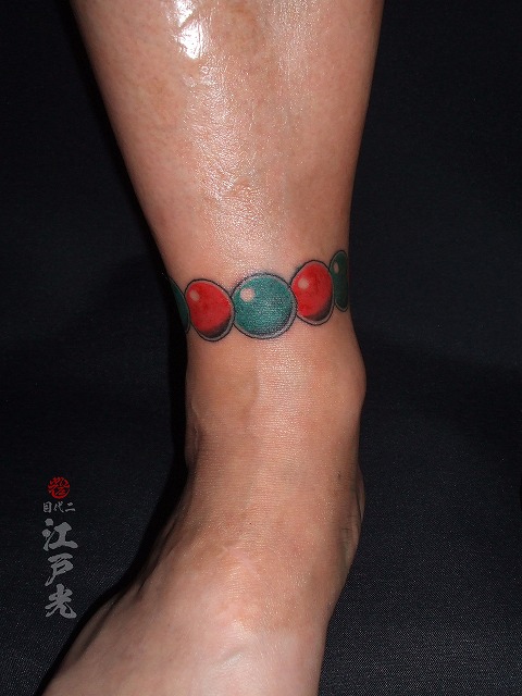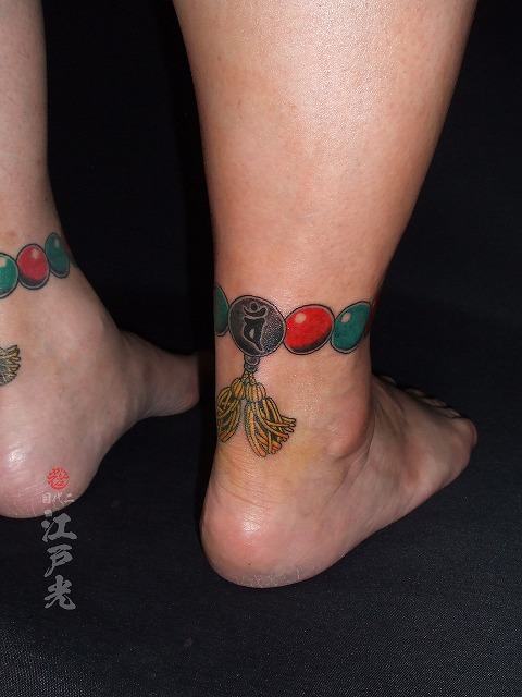 足首に数珠の刺青タトゥー:東京刺青師二代目江戸光