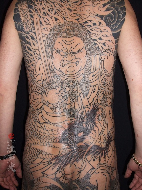 額のボカシと龍の色が入りました。5時間も彫ってとても素晴らしい根性です。