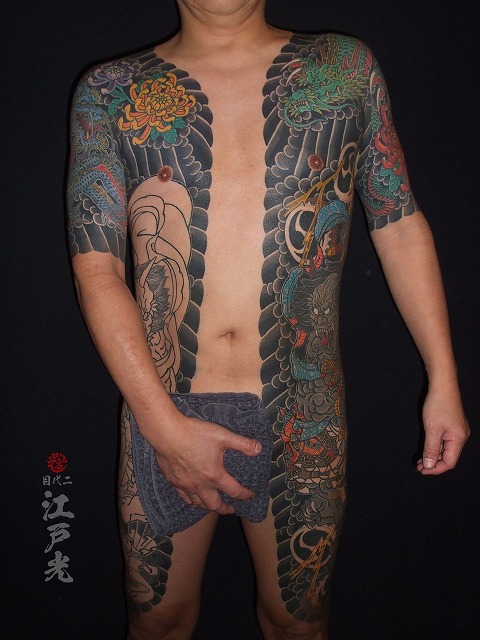 胸割りの刺青、雷神、和彫り、タトゥー:東京刺青師二代目江戸光 胸割りの刺青、雷神、和彫り、タトゥー:東京刺青師二代目江戸光