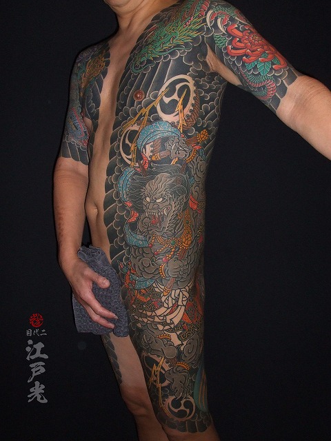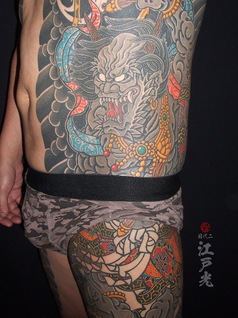 胸割りの刺青、雷神、和彫り、タトゥー:東京刺青師二代目江戸光 胸割りの刺青、雷神、和彫り、タトゥー:東京刺青師二代目江戸光