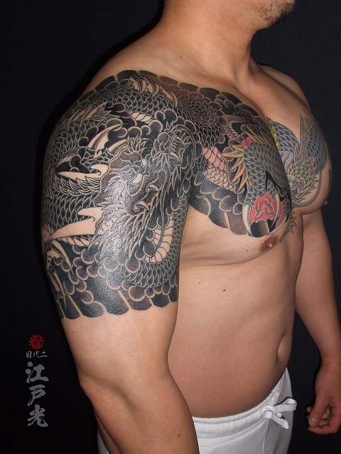 龍の色も入ってきてとてもかっこいいですね。いつも休まず頻繫に彫りに来るので、とても進みが早いですね。