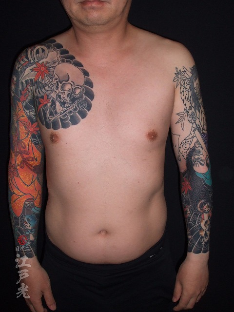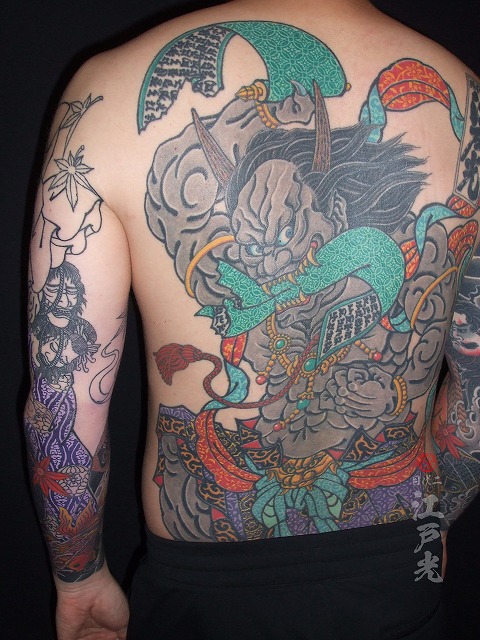 胸割り総身彫りの刺青、和彫り、タトゥー:東京刺青師二代目江戸光