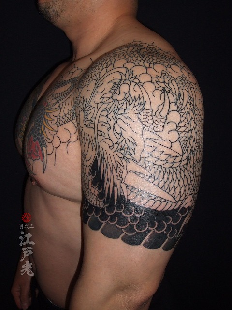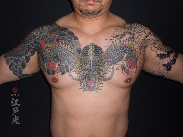 額のボカシが入りました。大胸筋がかなり発達していて、とても凄過ぎる筋肉ですね。いつも休まず頻繫に彫りに来て頂きありがとうございます。