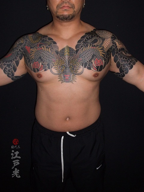 龍の刺青、坐龍、正面龍、タトゥー:東京刺青師二代目江戸光