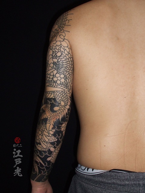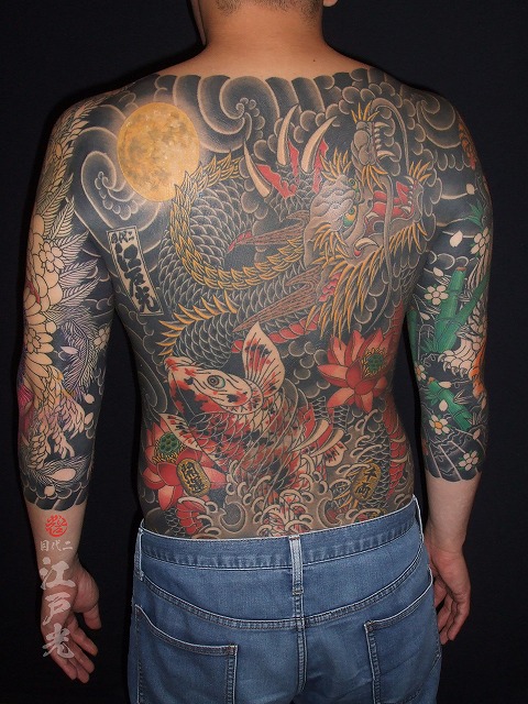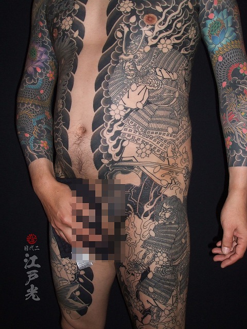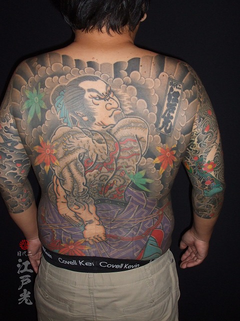 スジがかなり入ってきてとてもかっこいいですね。なんと背中を7時間半彫りました。とても素晴らしい根性です。