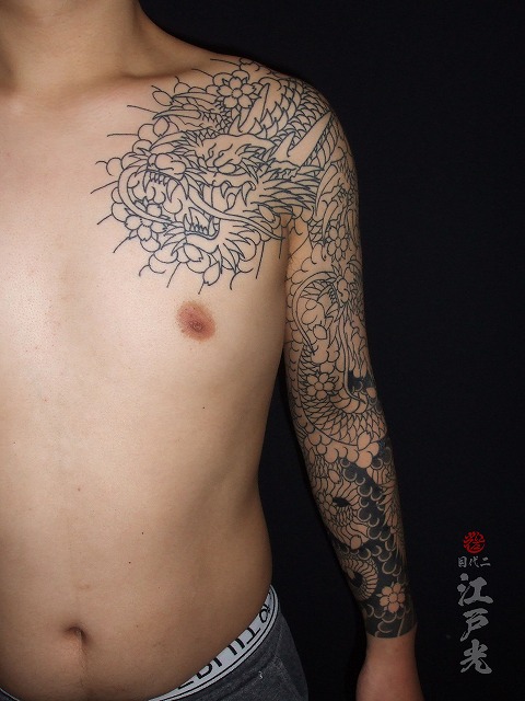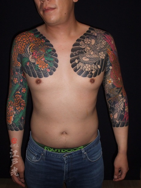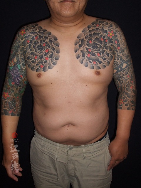 いつも休まず頻繫に彫りに来て頂きありがとうございます。このまま胸割り完成まで頑張って仕上げていきましょう。施術お疲れ様でした。