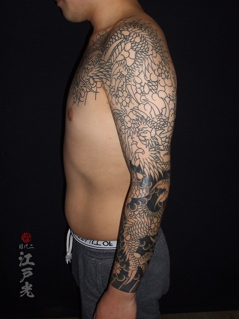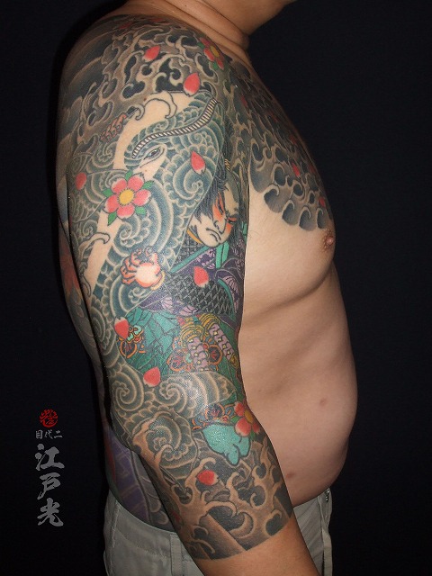 若いのにいつも休まず頻繫に彫りに来て頂きありがとうございます。このまま完成まで頑張って仕上げていきましょう。施術お疲れ様でした。