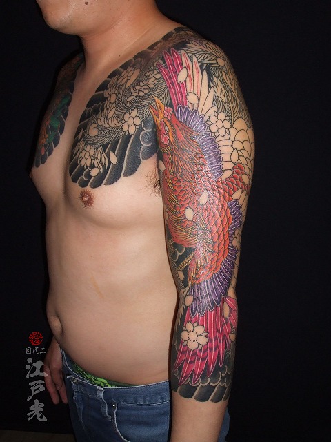 鳳凰の色もかなり入ってきてとてもかっこいいですね。毎回6時間も彫って本当に素晴らしい根性です。凄過ぎます。