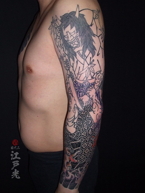 色もかなり入ってきてとてもかっこいいですね。休まず定期的に彫りに来て頂きありがとうございます。