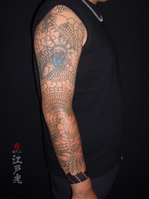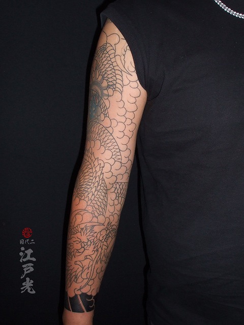 龍の色が入ってとてもかっこいいですね。若いのにいつも休まず頻繫に彫りに来て頂きありがとうございます。