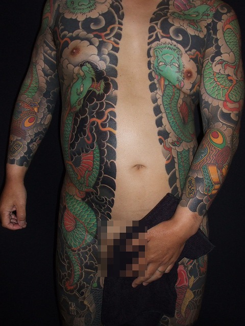 他店の作品の続きです。虎の色も入ってきてとてもかっこいいですね。若いのに山梨県から休まず彫りに来て頂きありがとうございます。