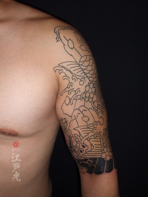 いつも休まず定期的に彫りに来て頂きありがとうございます。このまま完成まで頑張って仕上げていきましょう。施術お疲れ様でした。