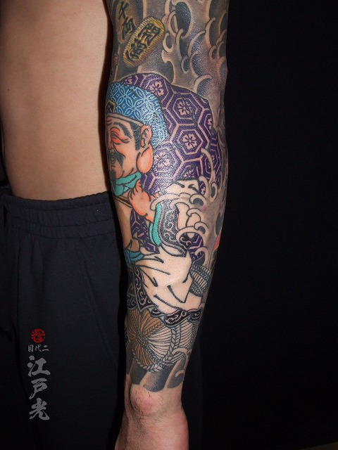 大黒天の色が入りました。若いのにまた10時間も彫り、とても素晴らしい根性してます。凄過ぎます。