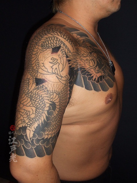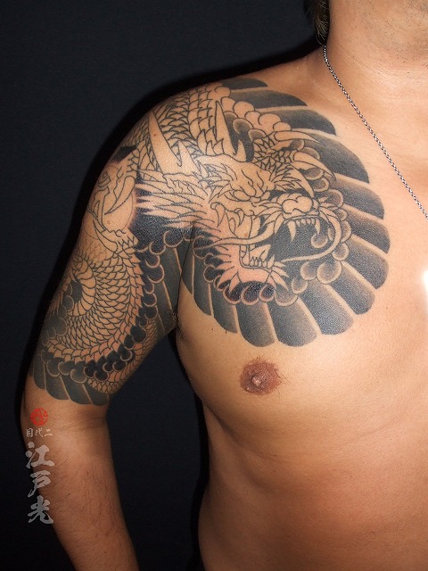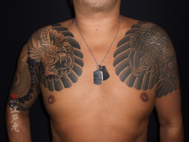 鯉の色が入ってとてもかっこいいですね。若いのにいつも休まず定期的に彫りに来て頂きありがとうございます。