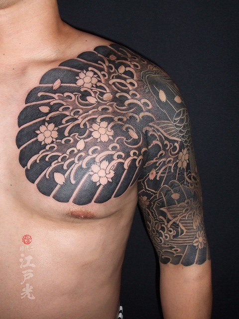 いつも休まず頻繫に彫りに来て頂きありがとうございます。このまま胸割り完成まで頑張って仕上げていきましょう。施術お疲れ様でした。