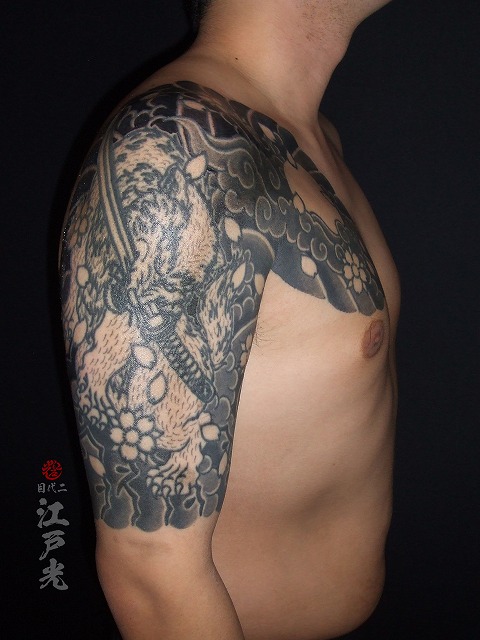 いつも休まず頻繫に彫りに来て頂きありがとうございます。このまま完成まで頑張って仕上げていきましょう。施術お疲れ様でした。