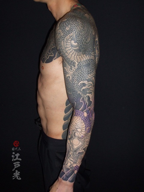 髪の毛と龍の色が入りました。若いのにいつも休まず頻繫に彫りに来て頂きありがとうございます。