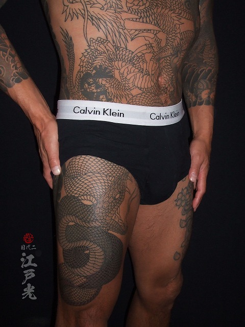 蛇の色もかなり入ってきてとてもかっこいいですね。いつも休まず彫りに来て頂きありがとうございます。