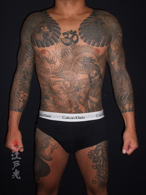 胸割り総身彫り最短記録で完成しました。180㎝105㎏合計418時間、2年以内で仕上がりましたね。