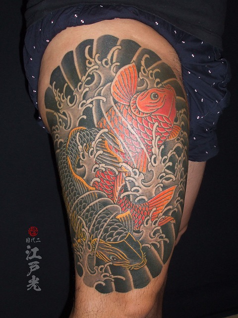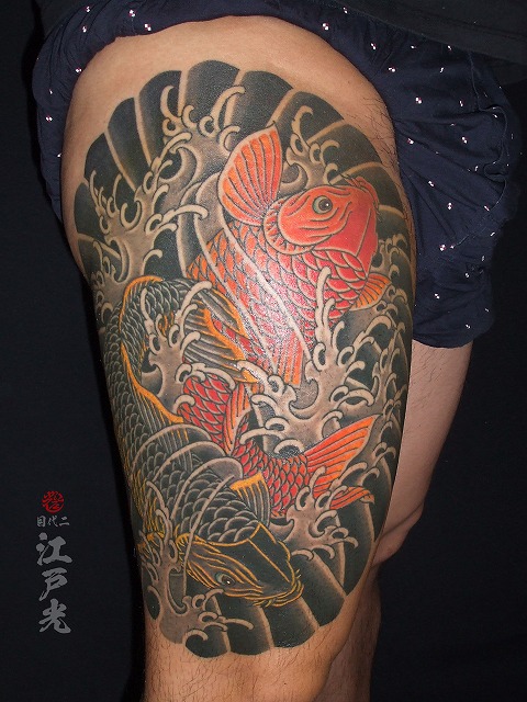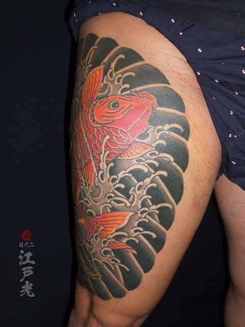 鯉の色も入ってとてもかっこいいですね。5時間も彫って素晴らしい根性です。いつも休まず定期的に彫りに来て頂きありがとうございます。