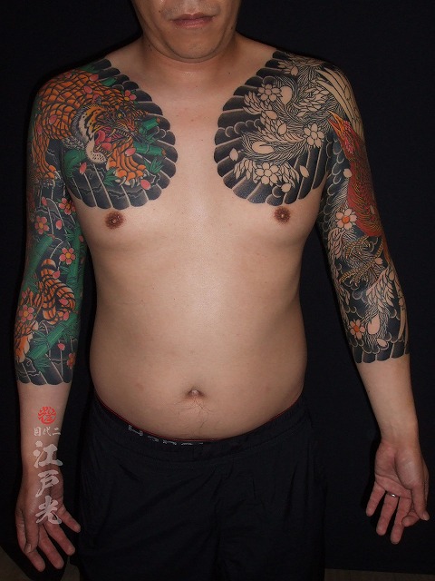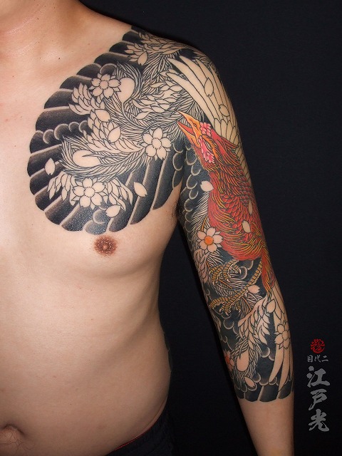 鳳凰のスジが入りました。毎回6時間も彫って本当に素晴らしい根性ですね。休まず頻繫に彫りに来て頂きありがとうございます。