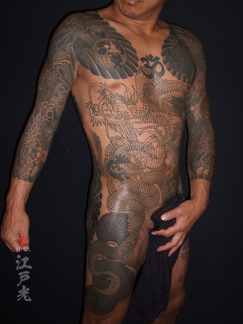 龍の色が入りました。若いのにいつも休まず定期的に彫りに来て頂きありがとうございます。