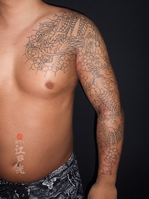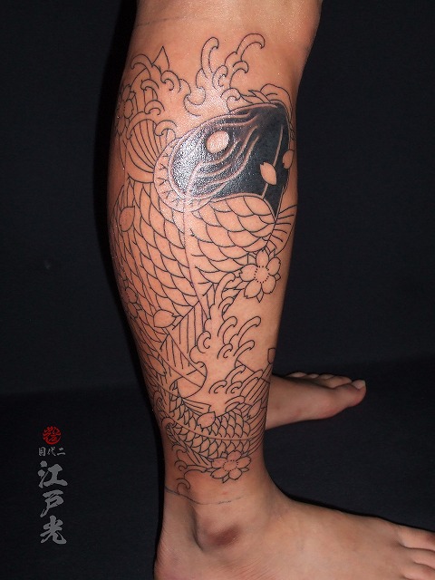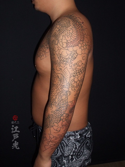 鯉の色が入りました。彫りに来て頂きありがとうございます。