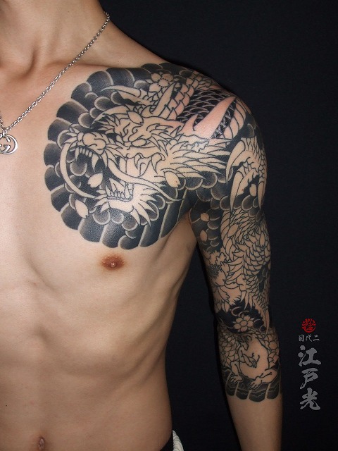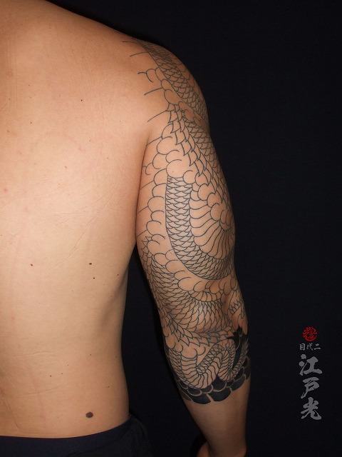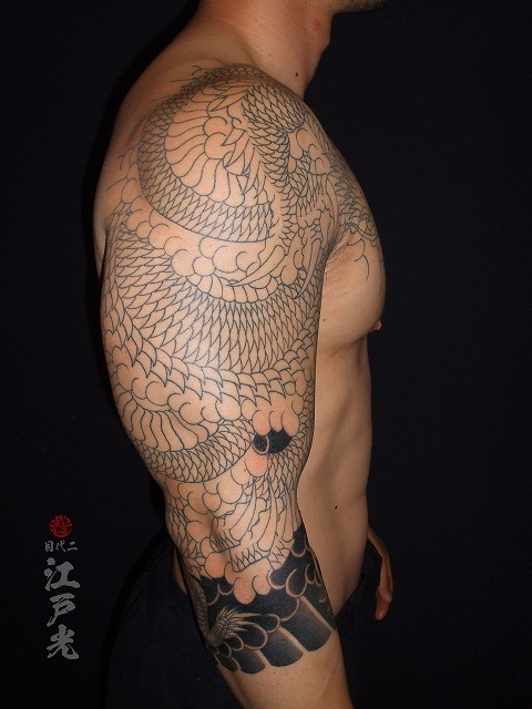 額と龍の色が入りました。いつも休まず定期的に彫りに来て頂きありがとうございます。