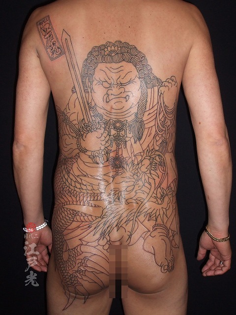 スジがかなり入ってきてとてもかっこいいですね。なんと背中を7時間半彫りました。とても素晴らしい根性です。
