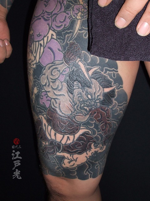 額のボカシが入りました。若いのにいつも休まず定期的に彫りに来て頂きありがとうございます。なんと6時間半も彫って本当に素晴らしい根性です。