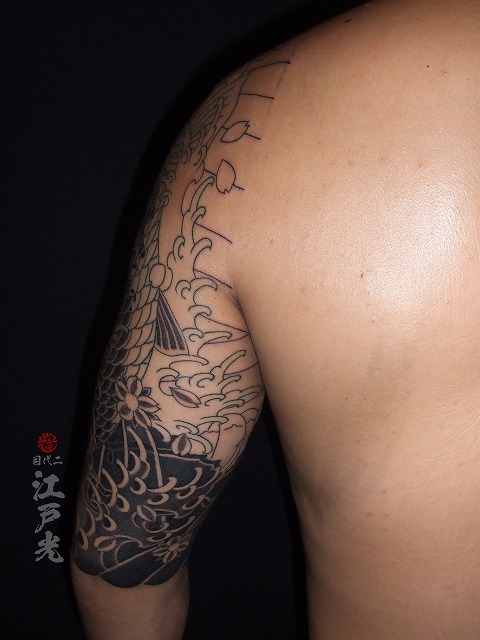 鯉の色が入りとてもかっこいいですね。うろこに梵字がありますが、分かりますか?