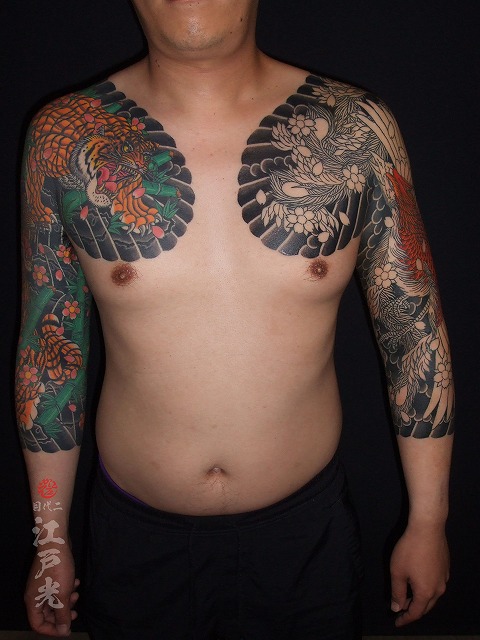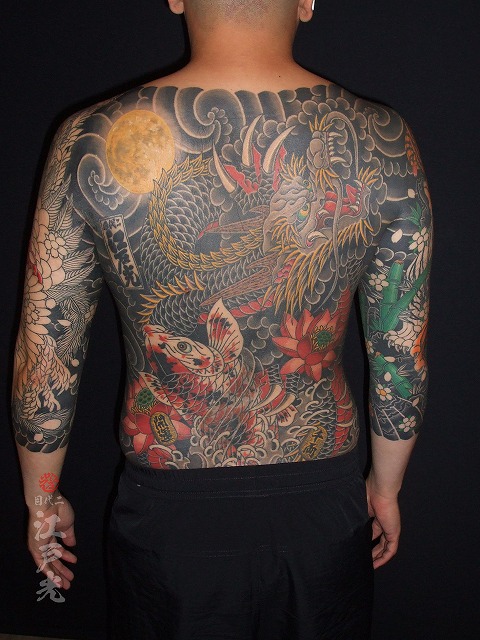 鳳凰のスジが入りました。毎回6時間も彫って本当に素晴らしい根性ですね。休まず頻繫に彫りに来て頂きありがとうございます。