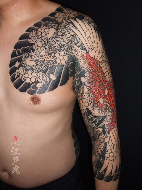 鳳凰のデザインは細かいですね。いつも休まず定期的に彫りに来て頂きありがとうございます。